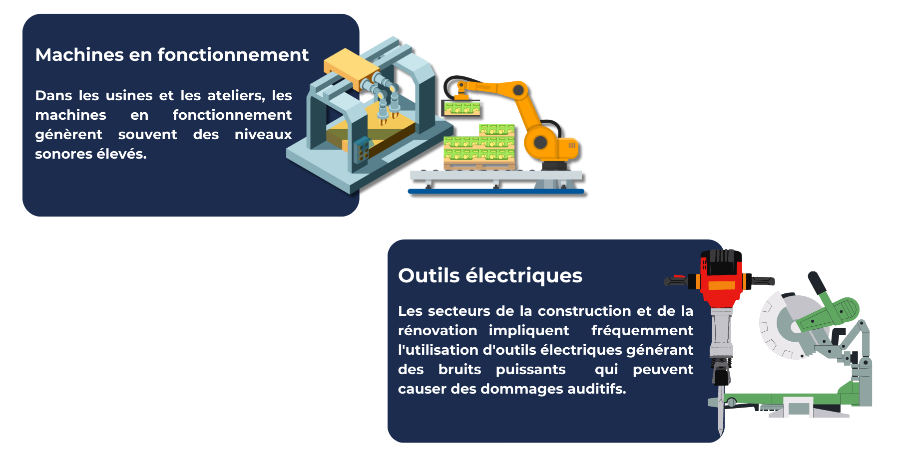 Dans le milieu du travail, l'environnement sonore varie selon le secteur d'activité et les processus en cours. Les sources de bruit peuvent être diverses et avoir des répercussions majeures sur la santé des collaborateurs. C'est notamment le cas dans certaines industries, comme la construction, la fabrication et les technologies, où les niveaux sonores élevés résultent de processus complexes et d'équipements spécifiques. Une évaluation précise et une gestion adéquate du bruit revêtent une importance capitale pour garantir la santé auditive des travailleurs. Voici quelques exemples de sources de bruit courantes sur les lieux de travail.