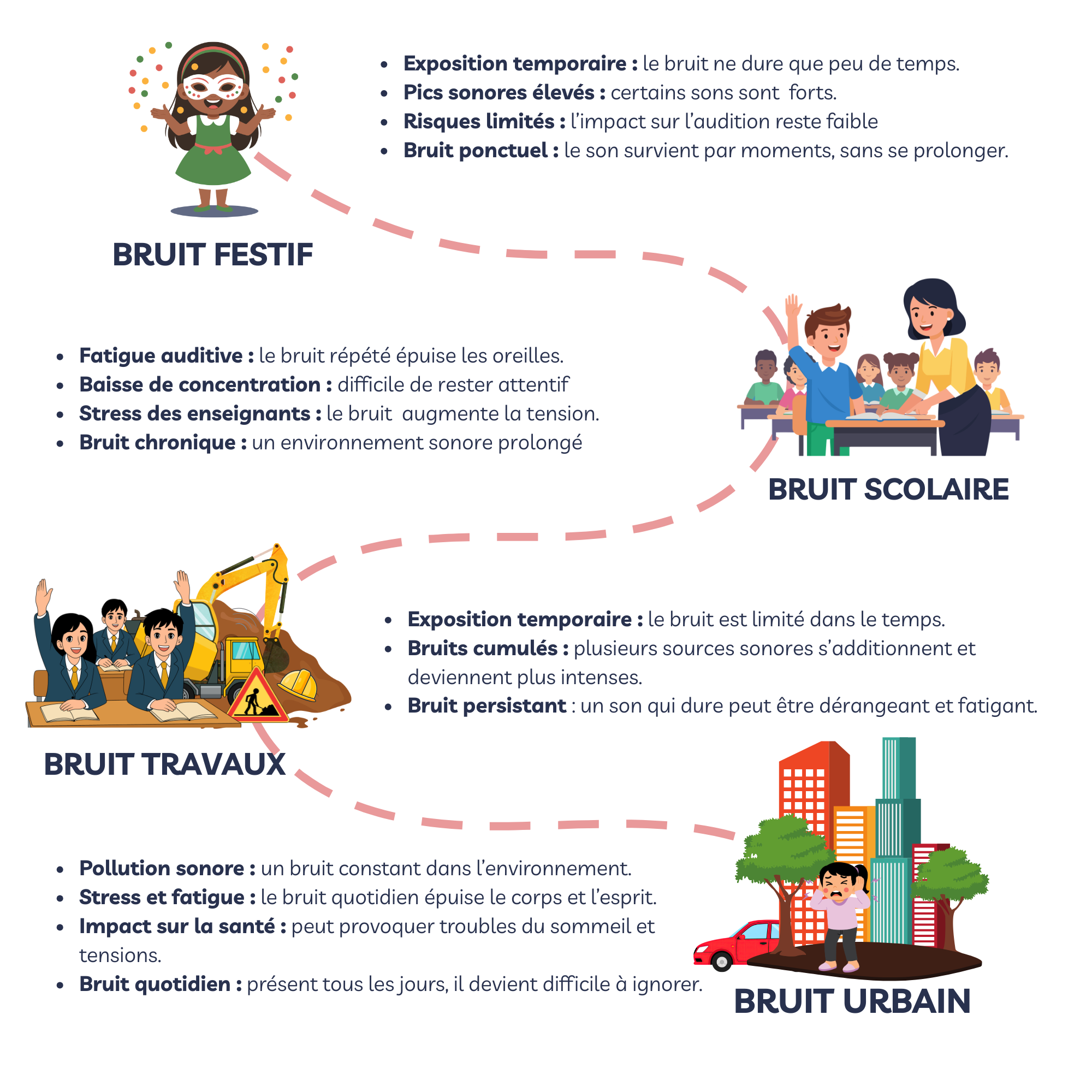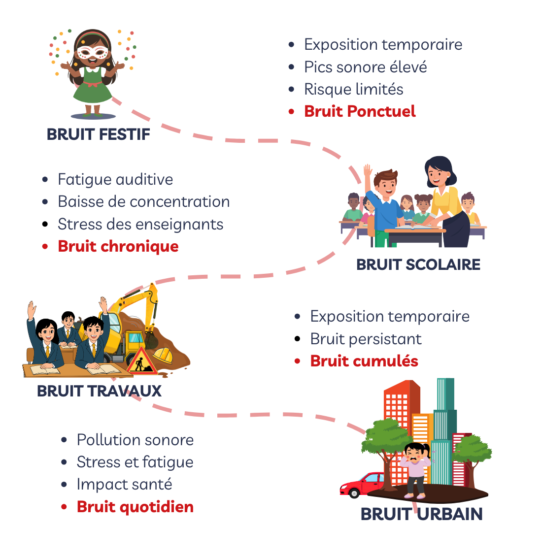 Si les cris et musiques du carnaval sont ponctuels, le bruit en milieu scolaire et urbain est permanent, cumulatif et souvent sous-estimé.